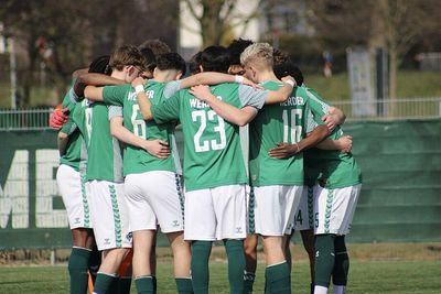 Im Endspiel wartete mit dem HSV ein alter Bekannter – und die Kulisse glich einem kleinen Nordderby. Unterstützung erhielten die Werderaner sogar vom SC Borgfeld, dessen Spieler nach ihrem eigenen Auftritt lautstark „Werder Bremen“ riefen. Die Stimmung war ganz klar Grün Weiß.