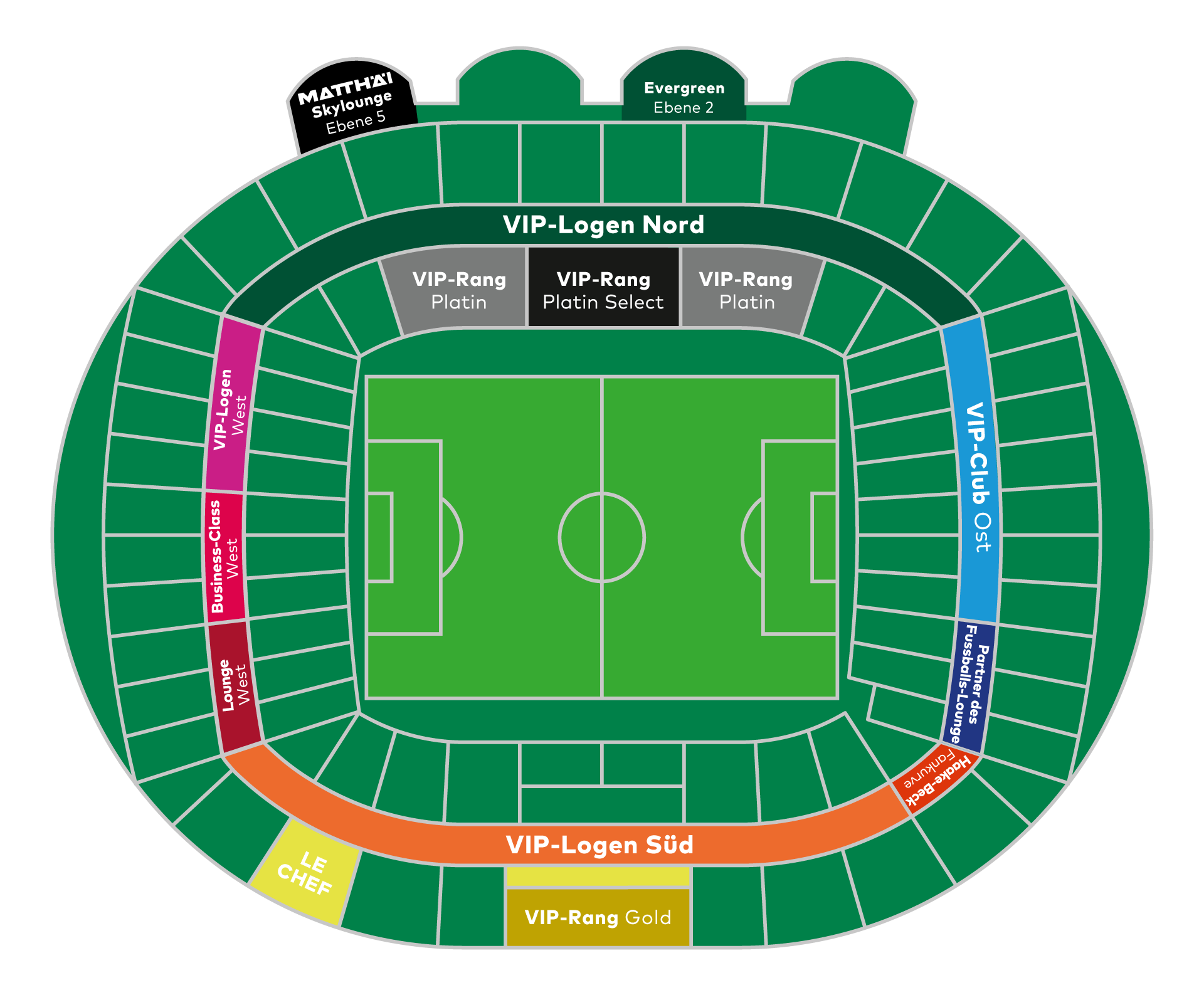 Eine Übersicht über die verschiedenen VIP-Bereiche mit den dazugehörigen Preisen finden Sie hier: